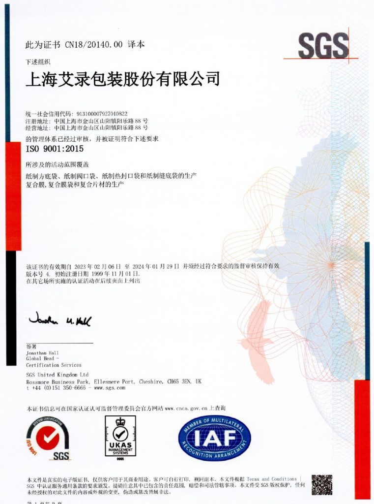 上海艾錄包裝股份有限公司(證券簡稱:上海艾錄 證券代碼:301062)成立于2006年,主要從事工業(yè)用紙包裝、塑料包裝及智能包裝系統(tǒng)的研發(fā)、設計、生產、銷售以及服務。經過多年的持續(xù)發(fā)展,公司已由國內領先的工業(yè)用紙包裝公司,成長為一家工業(yè)與消費包裝產品皆備的軟體包裝一體化解決方案提供商,并通過智能化、柔性化、定制化的生產能力,為妙可藍多、蒙牛、光明、雀巢、菲仕蘭、 陶氏、巴斯夫、沈陽化工、佰利聯、德高、立邦、東方雨虹、美巢等國內外知名工業(yè)及消費類企業(yè)客戶提供包裝解決方案所需的相關產品。